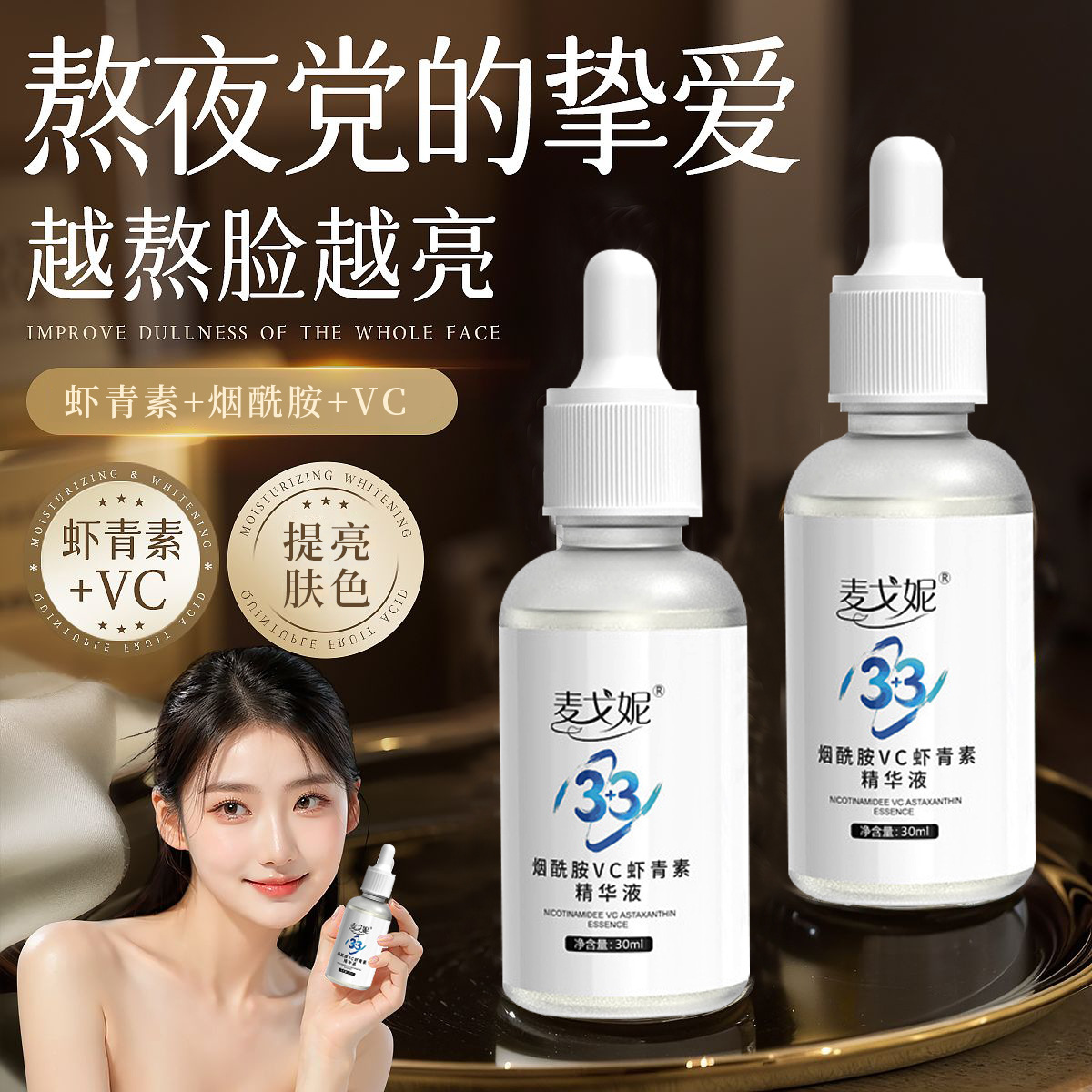 Niacinamide Astaxanthin Serum - Anti-Dullness, Antioxidant, Firming, Brightening, Hydrating