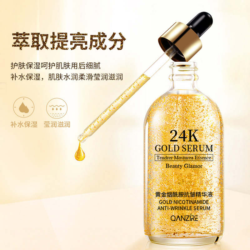 Qianzi 24K Gold Niacinamide Anti-Wrinkle Essence Original Solution Refined Pores Brightening Hyaluronic Acid Gold Foil Skin Care Products