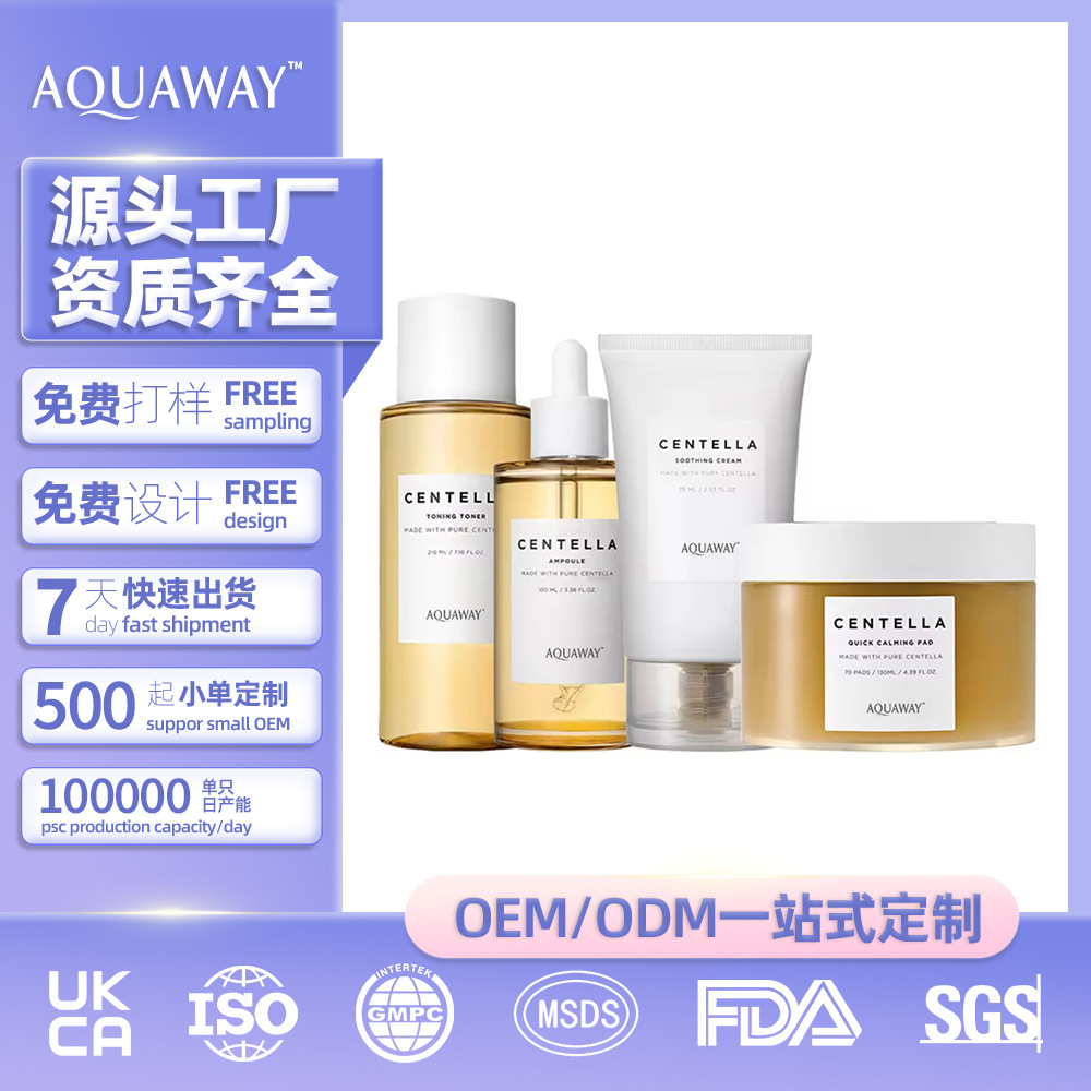 Cross-Border Centella Asiatica Skin Care Set Travel Size Facial Cleanser Essence Water Emulsion Facial Skin Care Set Export Customization