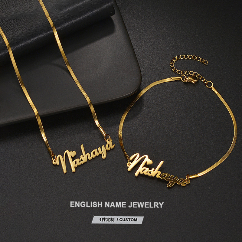 Cross-Border Popular Stainless Steel Blade Chain English Name Necklace Bracelet Private Engraving Cut Letter Jewelry