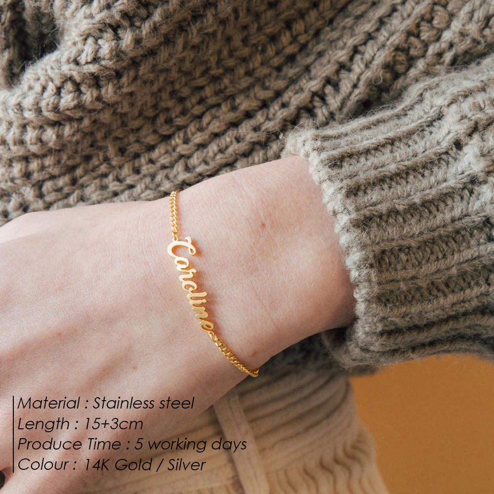 eManco name letter bracelet DIY couple titanium steel letter bracelet stainless steel Cuban chain bracelet bracelet