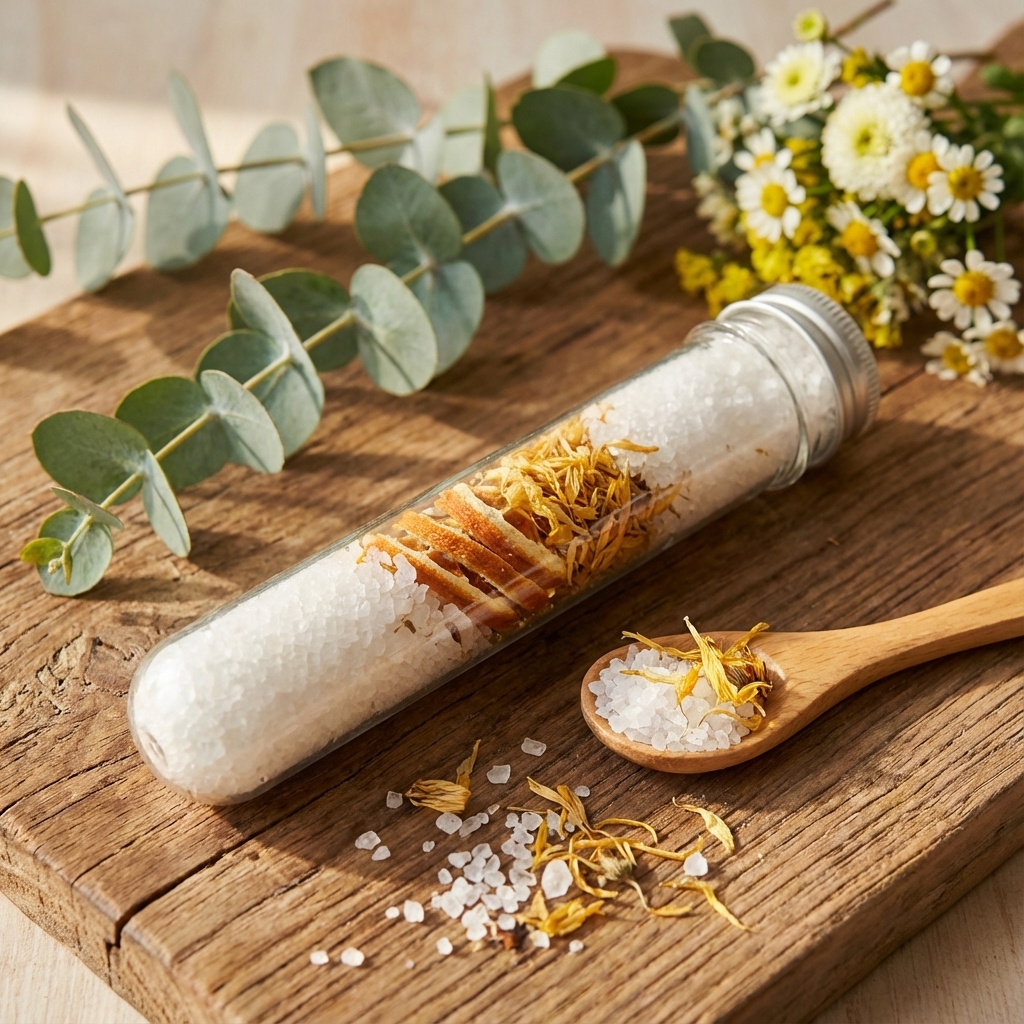 | Switch from premium salts (Himalayan/Dead Sea) to a Sea Salt/Epsom blend | ↓ High | Medium | - None | - None | Changes product positioning from luxury to value; affects color and perceived therapeutic benefits. |
