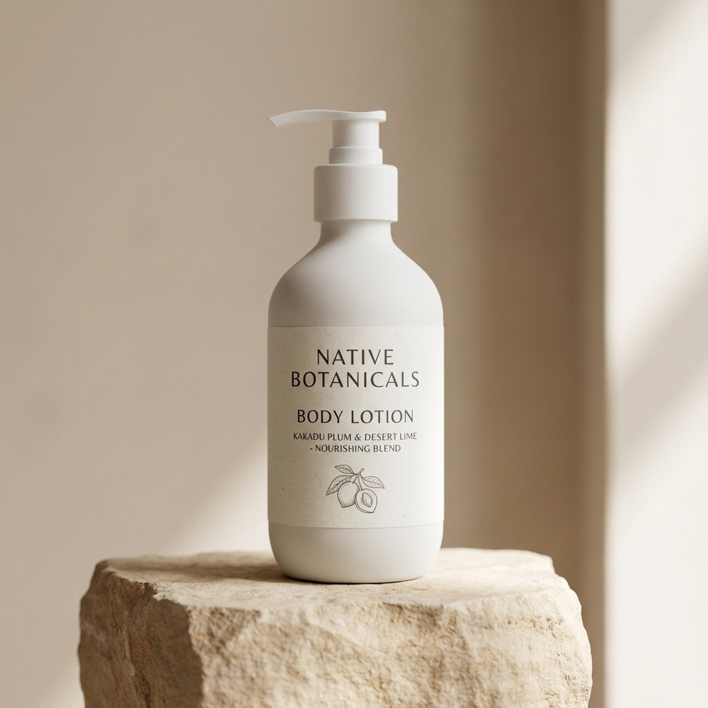 AI-generated product visualizations for Native Botanicals Body Lotion