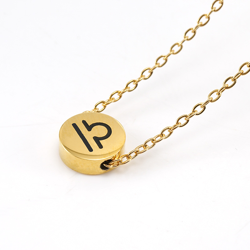 European and American Minimalist Titanium Steel Round Constellation Symbol Pendant Necklace Golden Stainless Steel 12 Constellation Ins Wind Necklace for Women