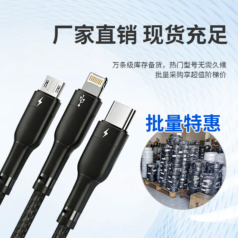Nylon Braided One-To-Three Charging Cable Year of the Snake Gift Printing Logo Three-In-One Fast Charging Data Cable