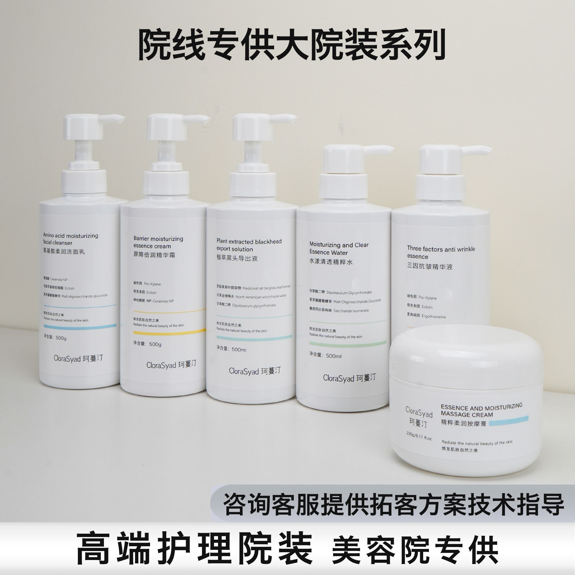 Beauty Salon Specializes in Skin Care Products, Classy Large Bottle of Facial Care, Water Cream, Facial Mask, Essence Cleansing Without Hanging Net