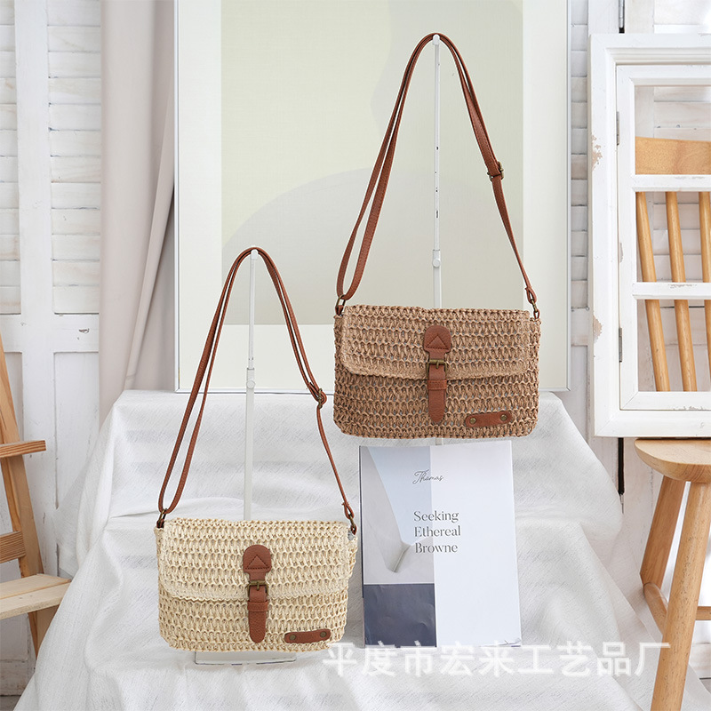 Seaside Straw Bag, Beach Bag, Women's New Forest Style Woven Bag, Versatile Shoulder Bag, Retro Postman Crossbody Bag