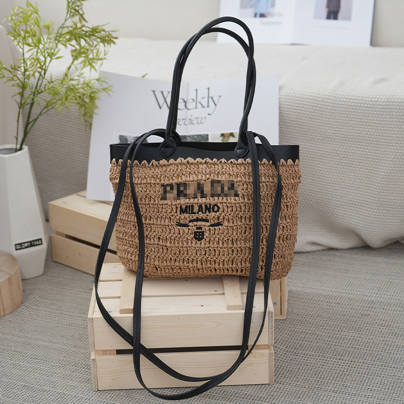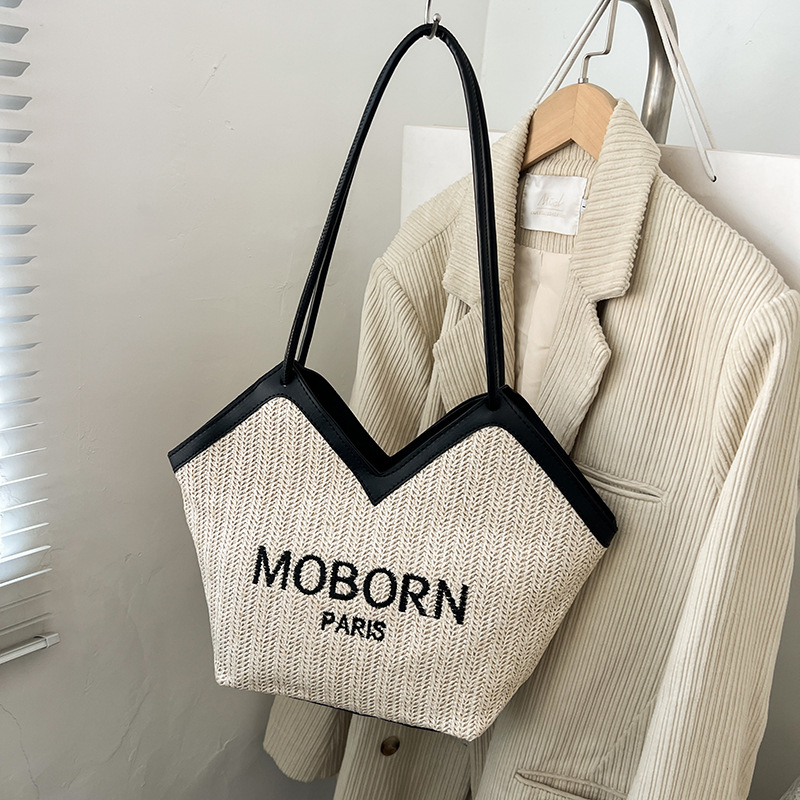 Large Capacity Fashion Straw Letters Tote Bag Women's Bag 2025 New Fashionable Leisure Commuter Shoulder Bag Cross-border Wholesale