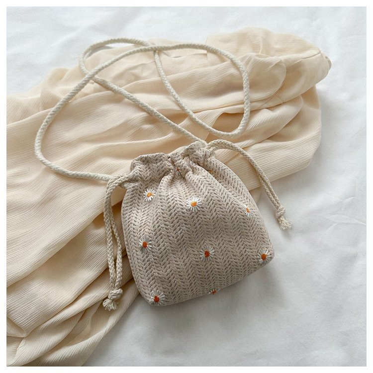 Woven Bag Women's 2022 New Fashionable Lace All-match Ins Drawstring Bucket Bag Shoulder Crossbody Straw Woven Bag