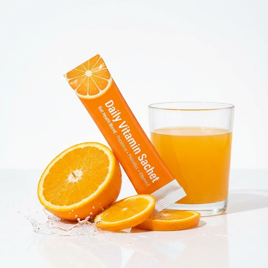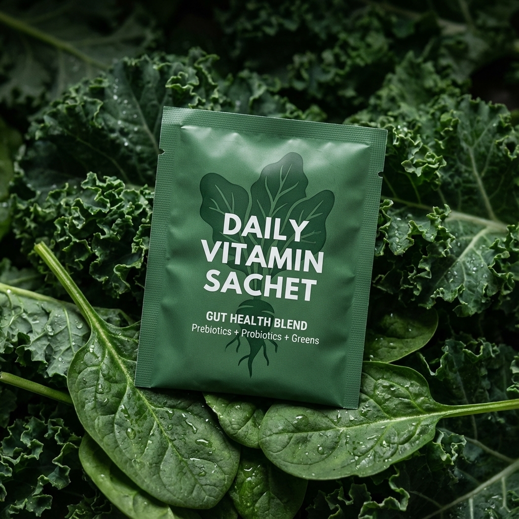 AI-generated product visualizations for Gut Health Sachets