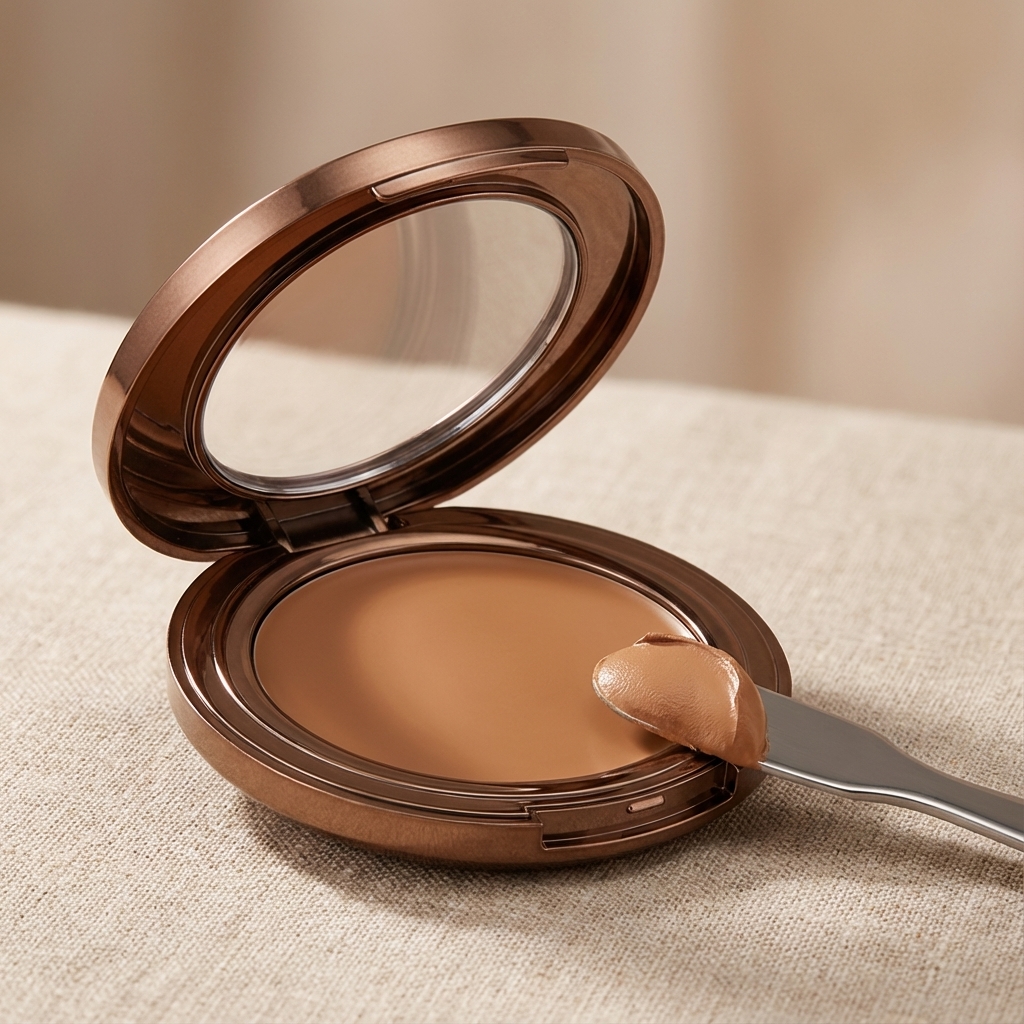 Compare production sample side-by-side with the approved master under controlled lighting (D65 light box). Swatch on multiple skin tones.