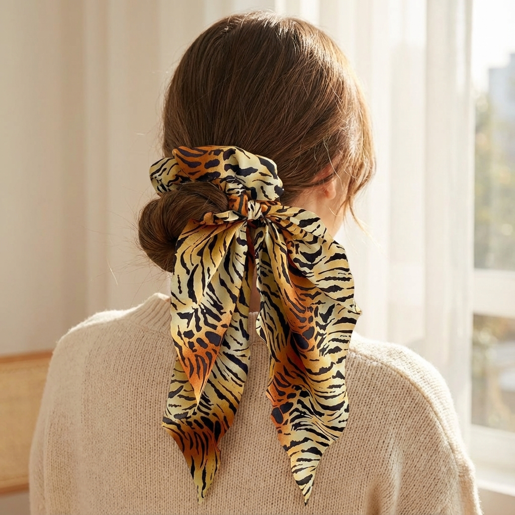 AI-generated product visualizations for Scarf Scrunchie Hair Ties