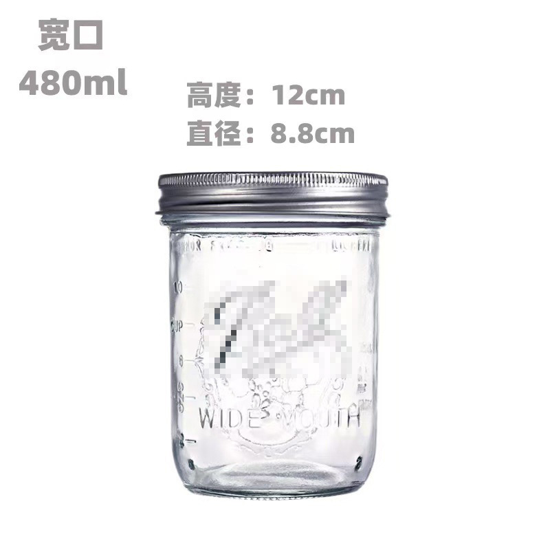Mason Jar Mason Glass Bottle Vegetable Jam Sealed Jar Cold Drink Bottle Cross Border for Mason Cup Storage Jar Wide Mouth