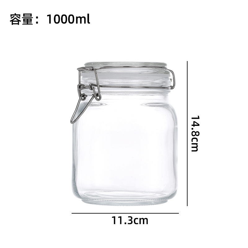 Snap-On Glass Storage Jar Glass Sealed Jar Transparent Storage Moisture-Proof Tea Jar Honey Bottle Pickle Storage Jar