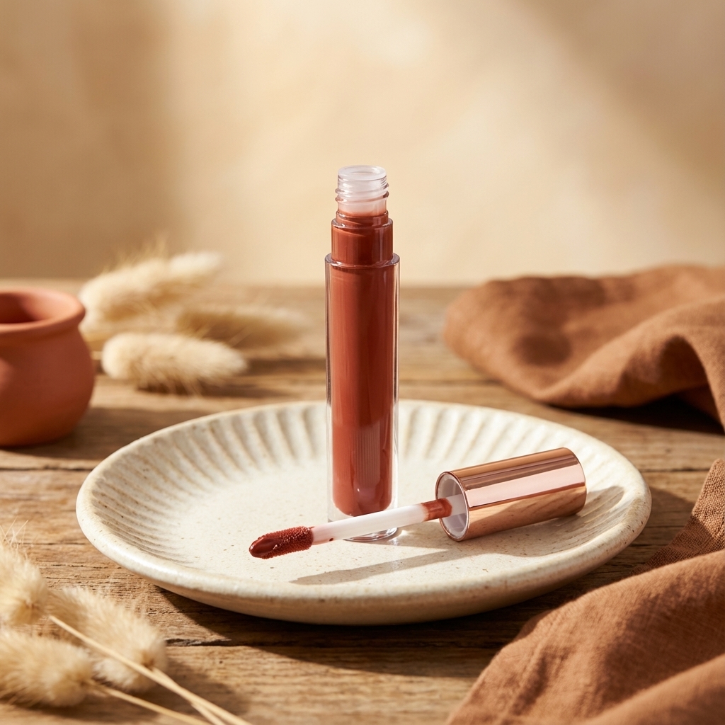 AI-generated product visualizations for Earthy Tones Lip Gloss