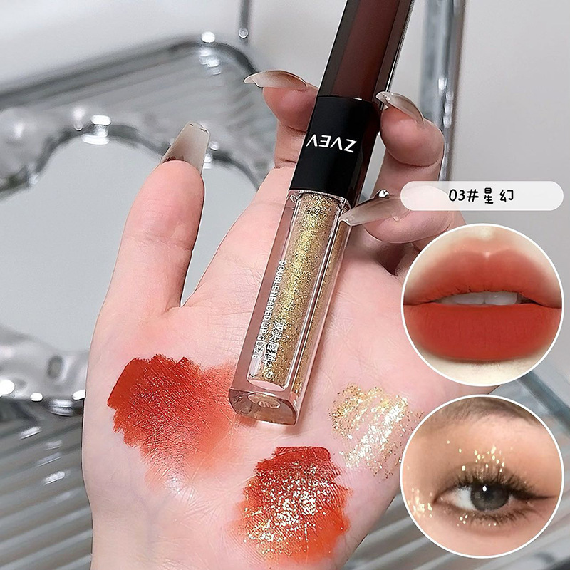 ZVEV double-ended eyeshadow liquid lip glaze set, shimmering 3D pearlescent high-gloss lying silkworm brightening eye makeup, eyeshadow manufacturers