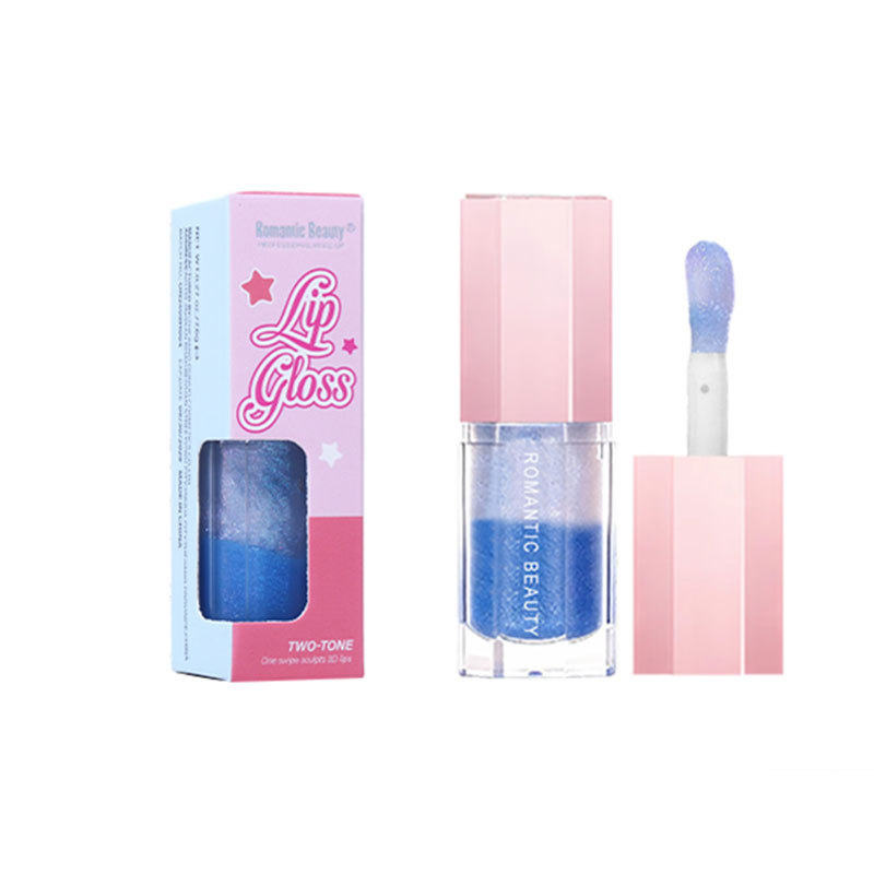Cross-Border Two-Color Lip Gloss Pearlescent Micro-Glitter Lip Glaze Sequin Moisturizing Lip Gloss Easy to Color Long-Lasting Lip Oil Non-Fading Lipstick