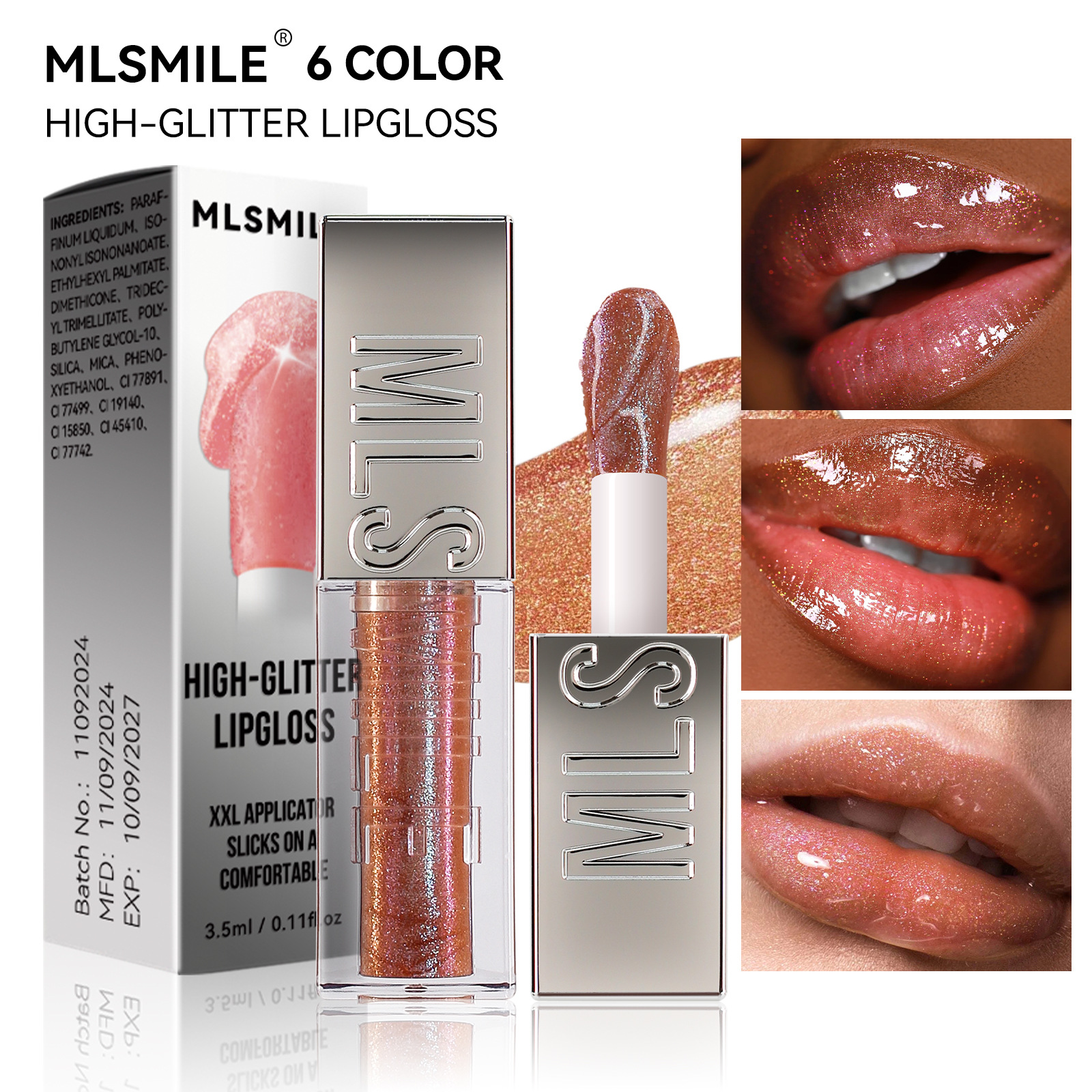 Mlsmile Cross-Border Matte Non-Stick Lip Glaze Waterproof Non-Fading Liquid Lipstick Water-Gloss Moisturizing Lip Plumping Lip Gloss