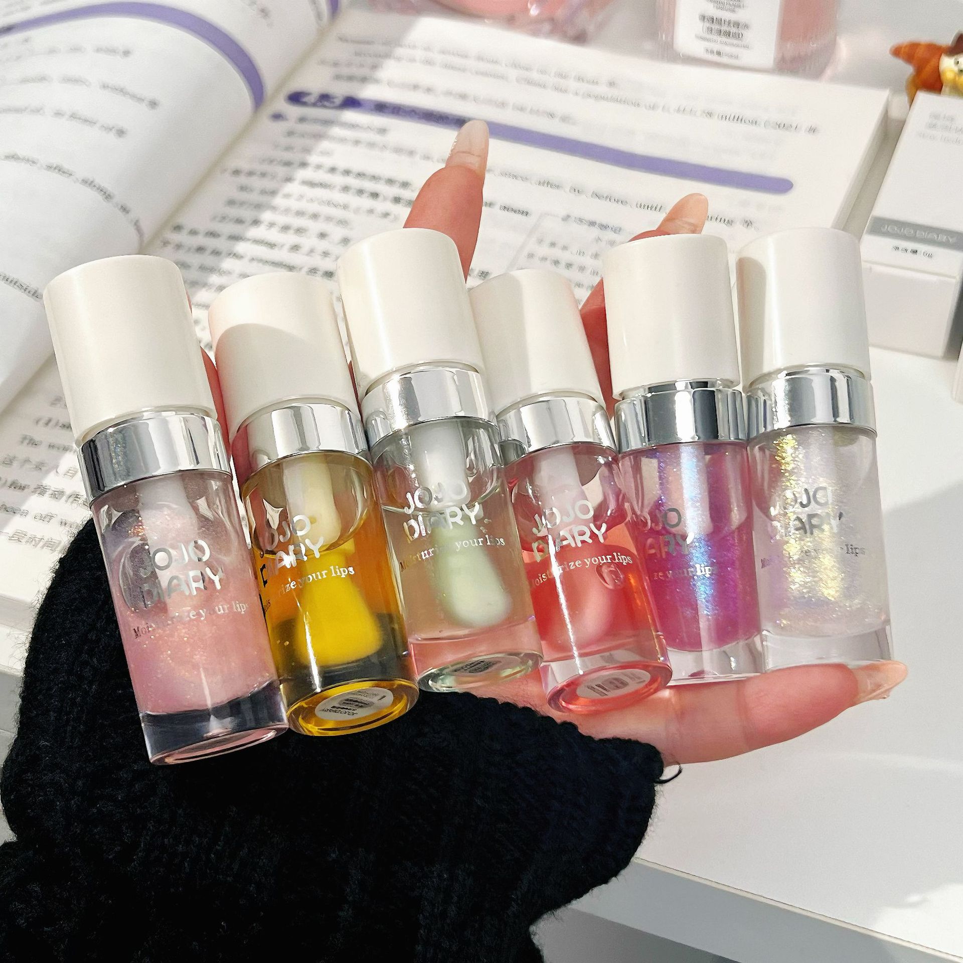 Long Diary Silver Edge Doodle Lip Honey Moisturizing and Moisturizing Lip Oil Glass Lip Gloss Lip Balm