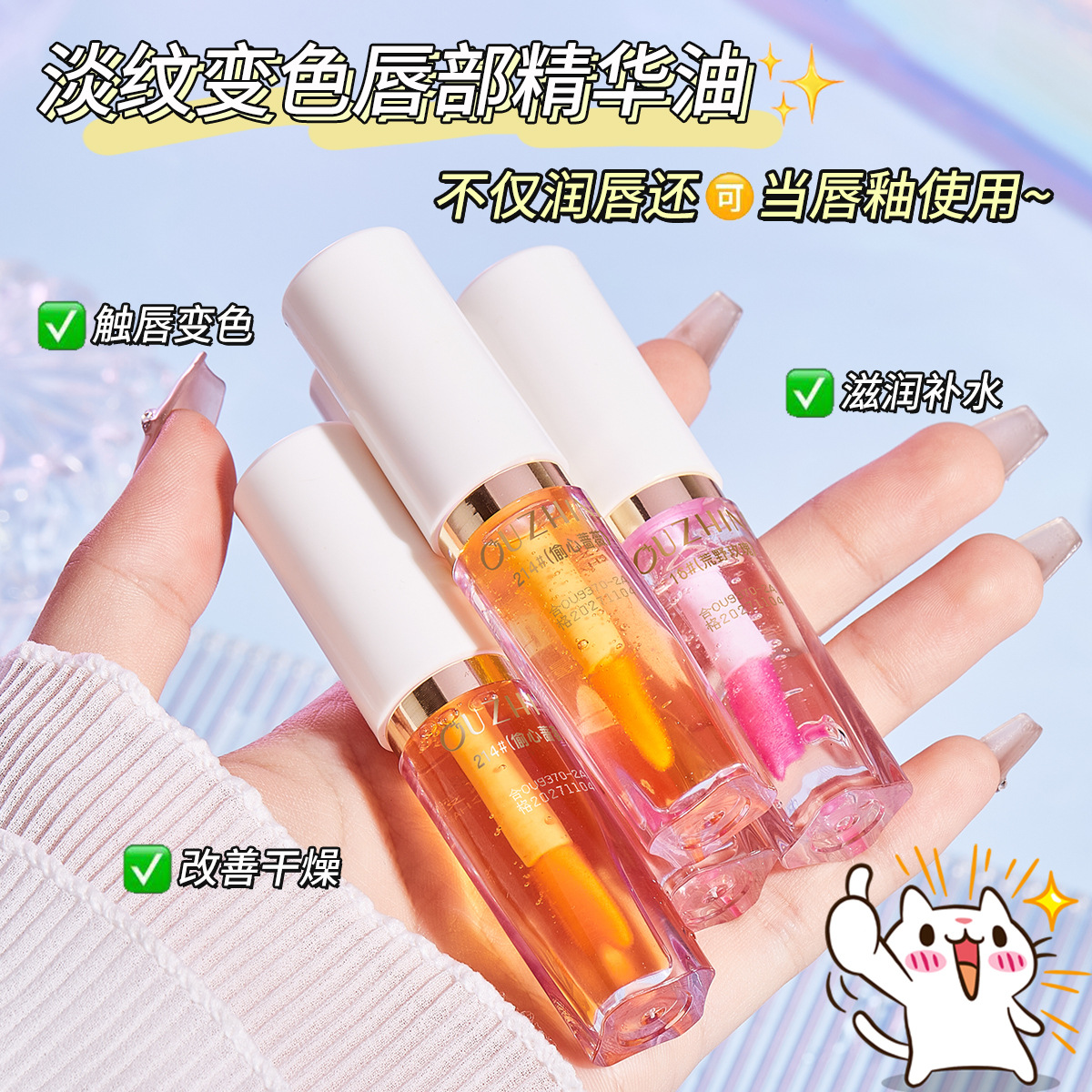Cross-Border Moisturizing Color-Changing Lipstick Lip Oil Plant-Based Lip Plumping Oil Pouty Lips Lip Care Yuyang Lip Oil in Stock