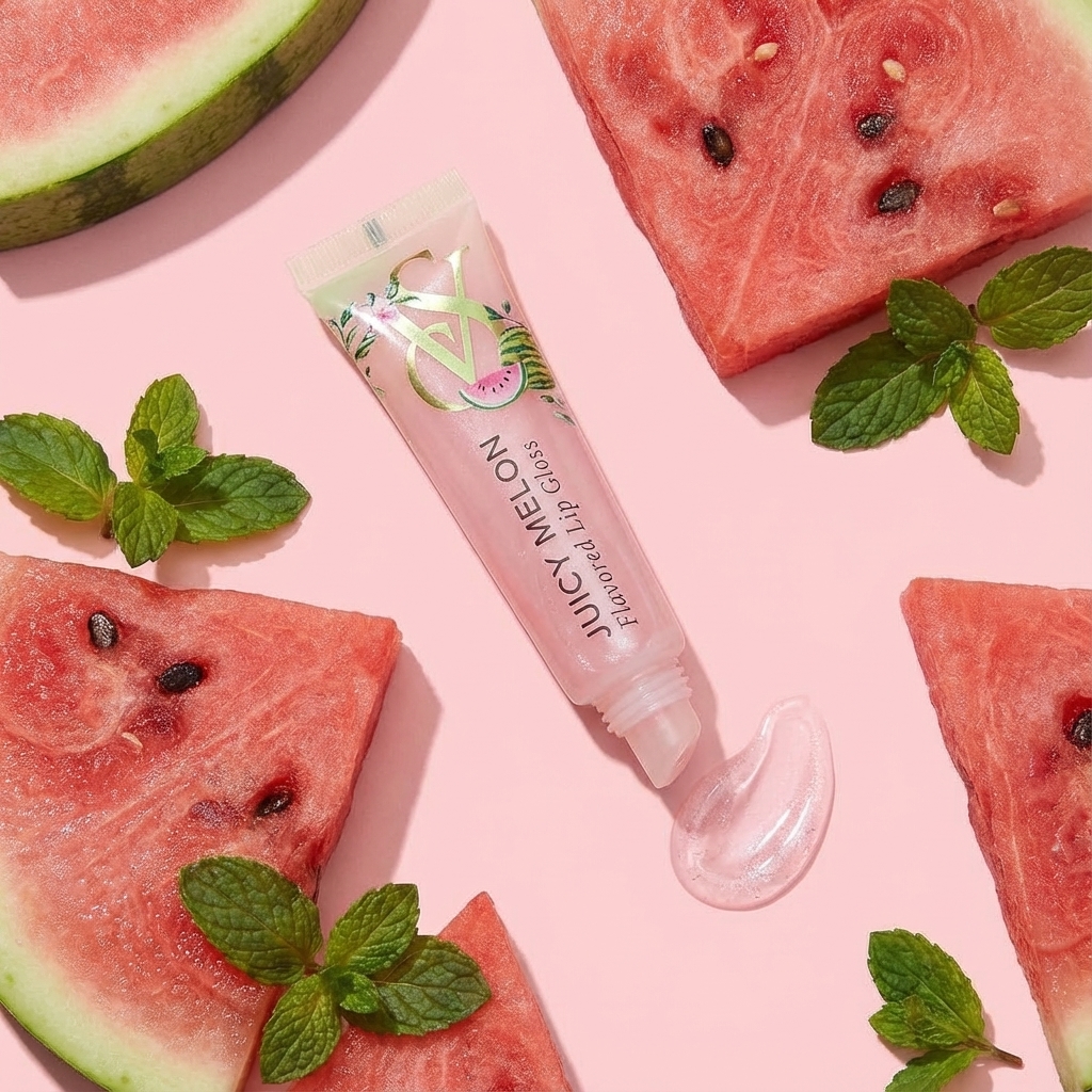 AI-generated product visualizations for Scented & Flavored Lipgloss