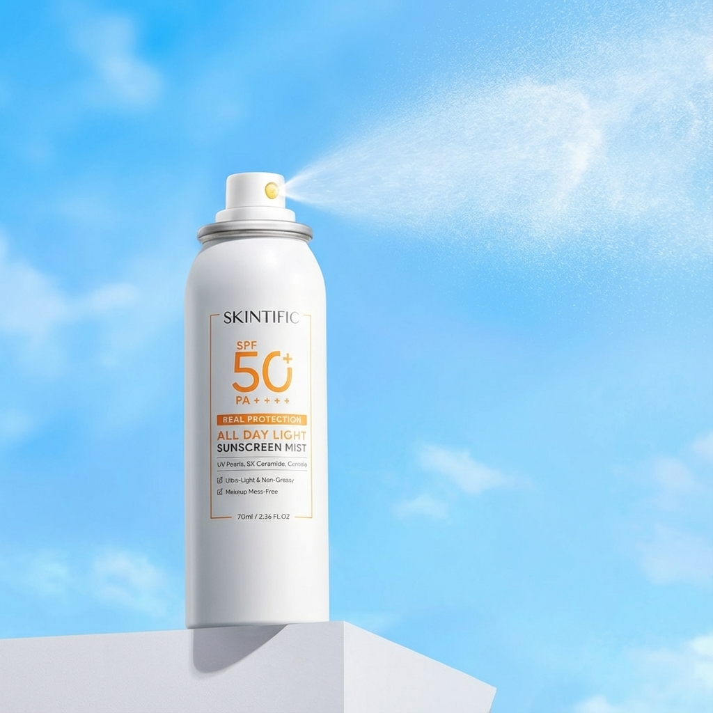 AI-generated product visualizations for Sunscreen Mist Spray