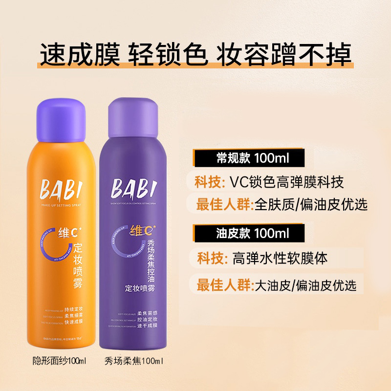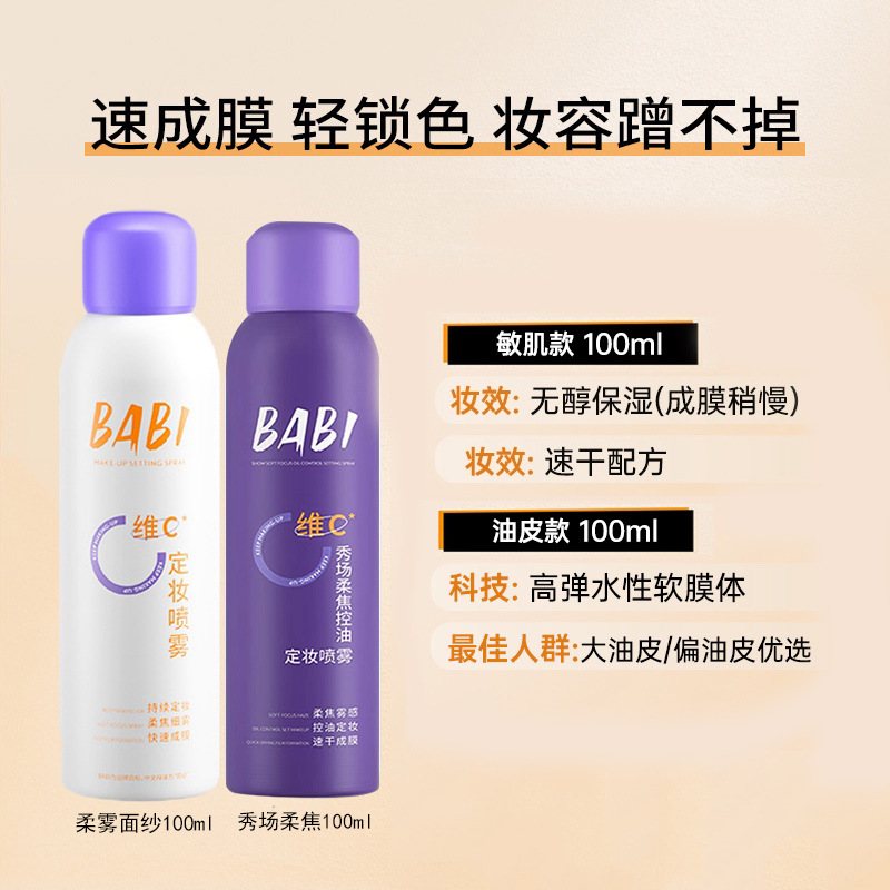 ![]() | Babi Makeup Setting Spray Vc Long-Lasting Makeup Oil Control Rapid Film Formation Vitamin C Classic Model for Dry and Oily Skin | 1 | ¥91.80 | $82.62 | 13,318 | 4,245 | 0.0 |