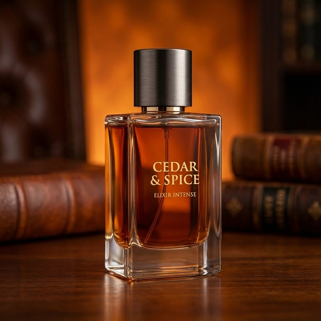 AI-generated product visualizations for Intense Woody Perfumes