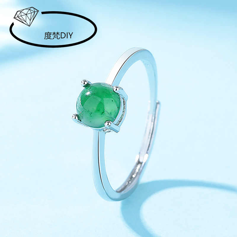 White Gold Fashion Simple Women's Ring Empty Holder Copper Ring Holder DIY Four-Claw Inlaid Jade Huazi Diamond High Imitation 925 Silver