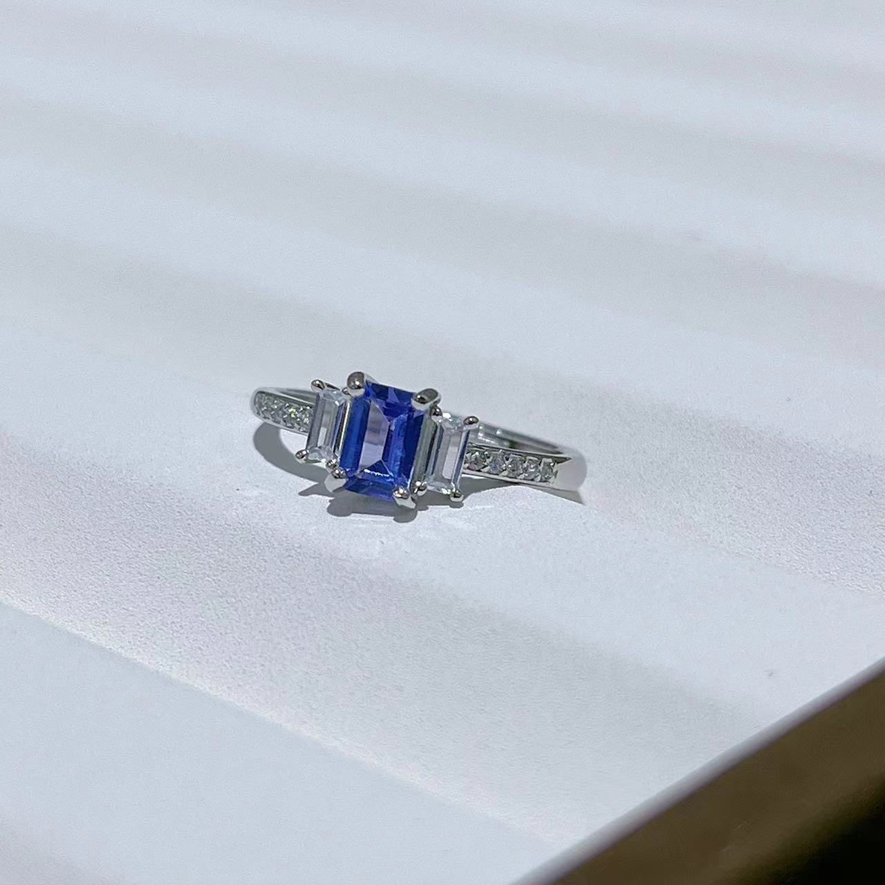 2023 Spring New S925 Silver White Golden-Plated Inlaid Tanzanite Ring Main Stone 4*6mm Open Ring