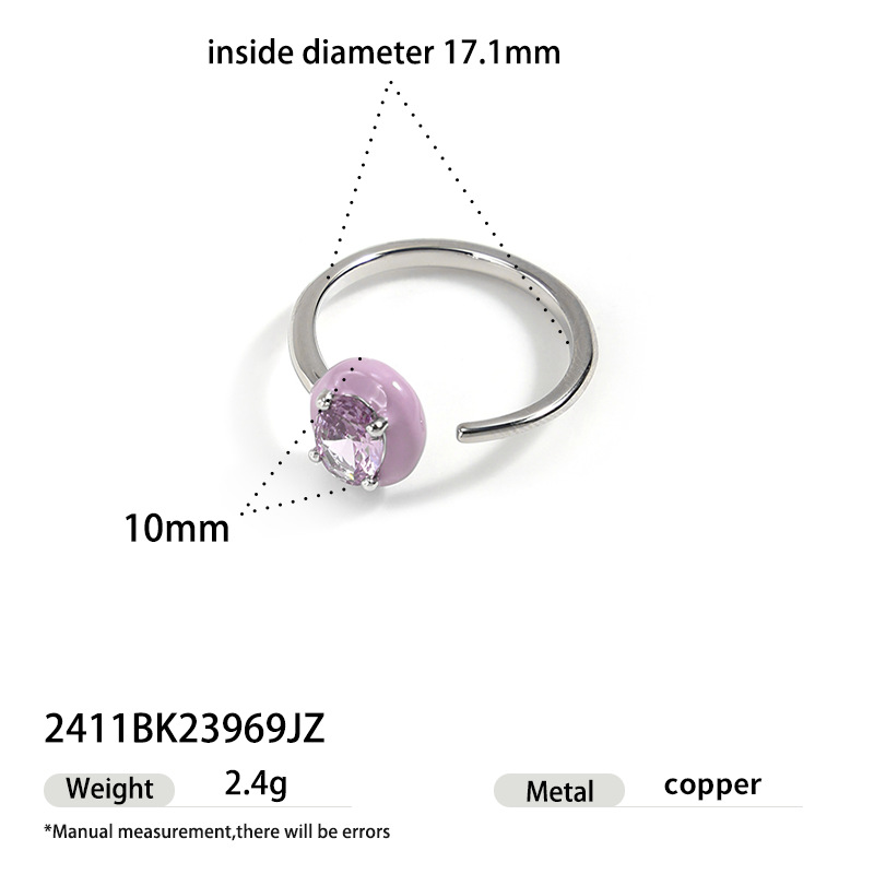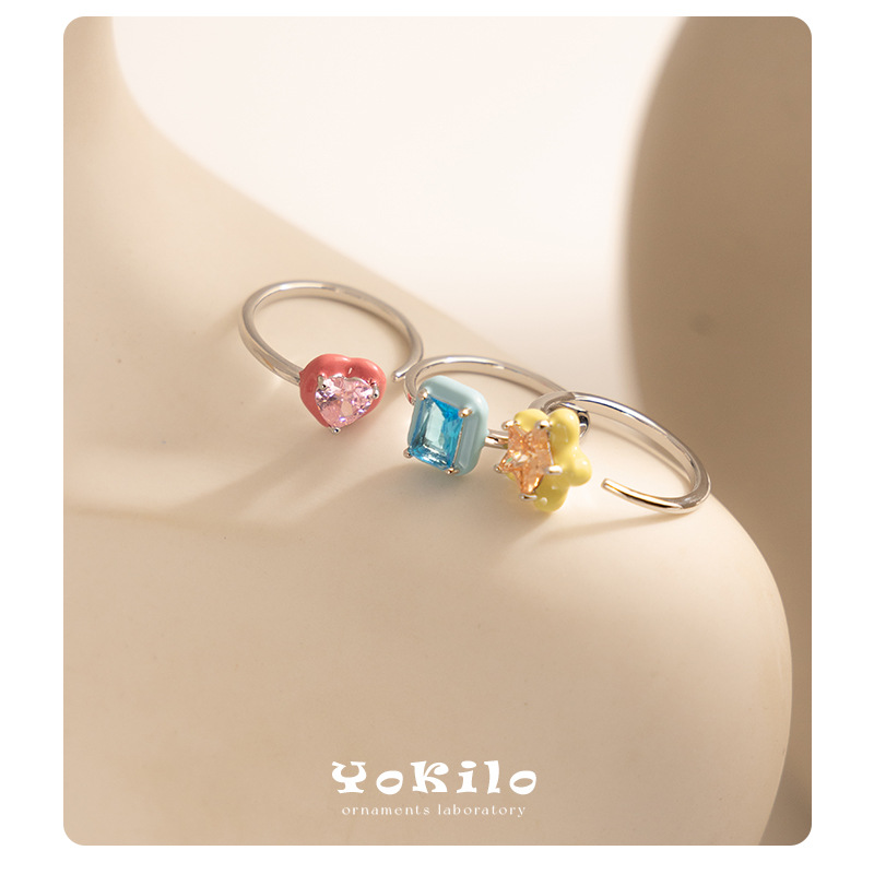 2025 New Fashion Brand Sweet Style All-match Zircon Dopamine Handmade Oil Dropping Cold Enamel Ring for Women Niche Design