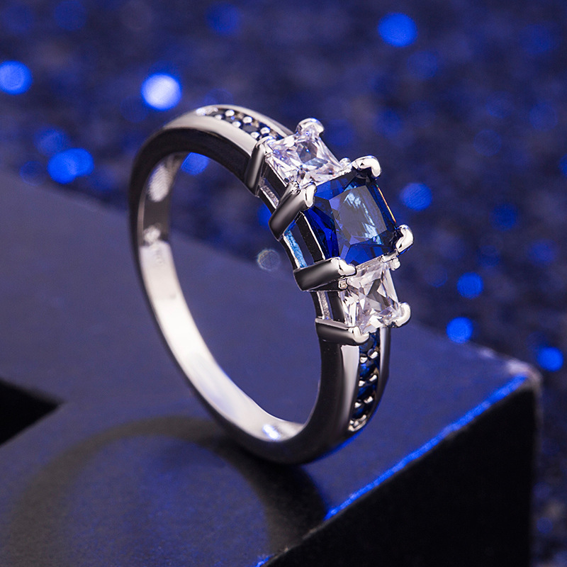 wish Hot Sapphire Ring Women European and American Sapphire Amethyst Gemstone Wedding Ring Finger Fashion Jewelry Wholesale