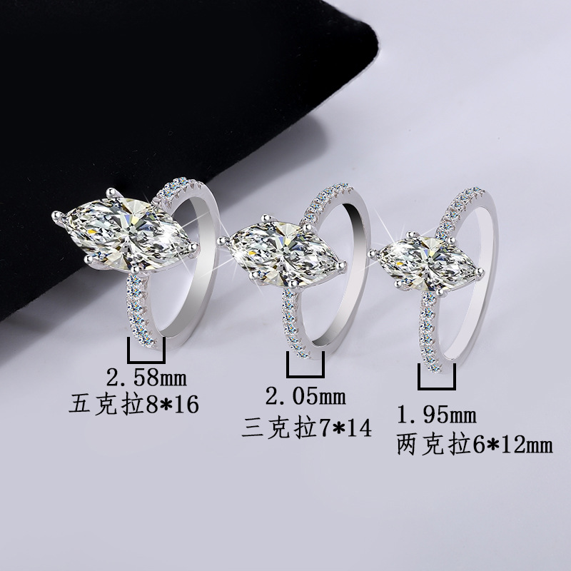 European and American Popular S925 Sterling Silver Crown Goddess Marquise Ring Full Moissanite Ring Women's High-End Fashion Couple Ring