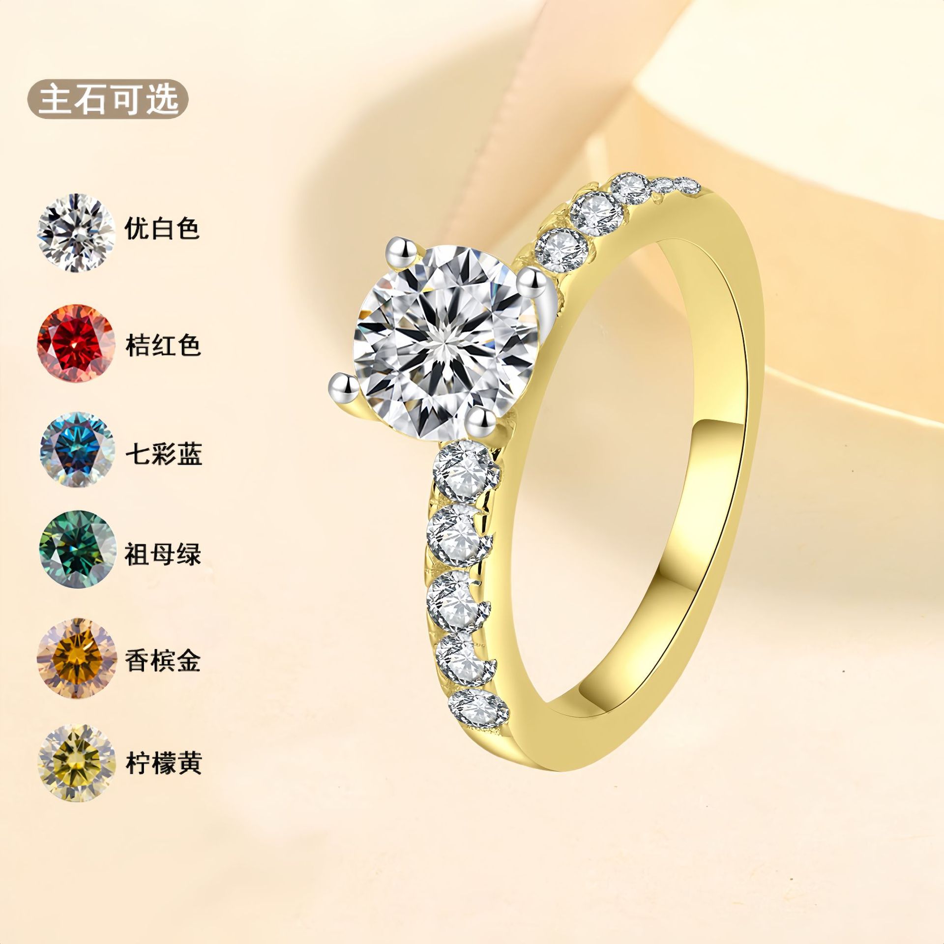 Cross-Border fast hand Xiaohongshu Internet celebrity live broadcast simulation moissanite ring, women's 1 carat six-claw wedding ring, factory wholesale
