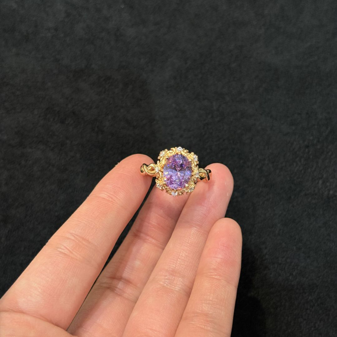 French Romantic, Elegant and Accessible Luxury Golden Oval Egg-Shaped Ring for Women, Fashionable and Exquisite Inlaid Zircon High-End Ring