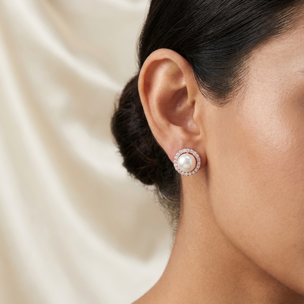 AI-generated product visualizations for Classic Pearl Studs