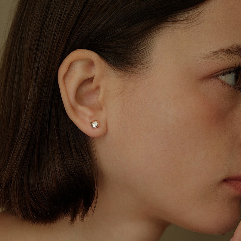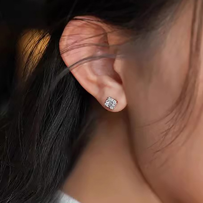 F136 Titanium Alloy Blinking Square Zircon Earrings, Women's Light Luxury Niche Exquisite High-End Butterfly Clasp Earring