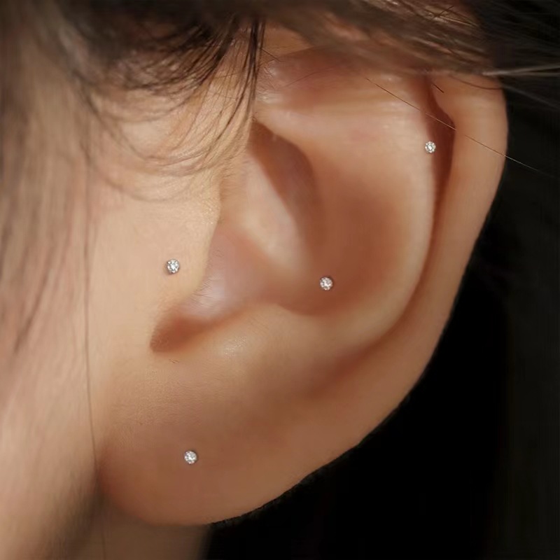 Super Shiny High-End Zircon Earrings for Women Niche Fashion Ear Piercing Ear Bone Nails Compact Mini Versatile Earrings Wholesale
