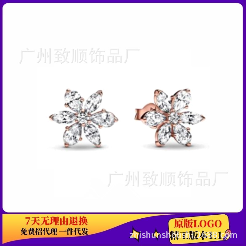 Pan Meimei new arrival white copper silver plated rose gold six-pointed star snowflake Pearl five-pointed star stud earrings