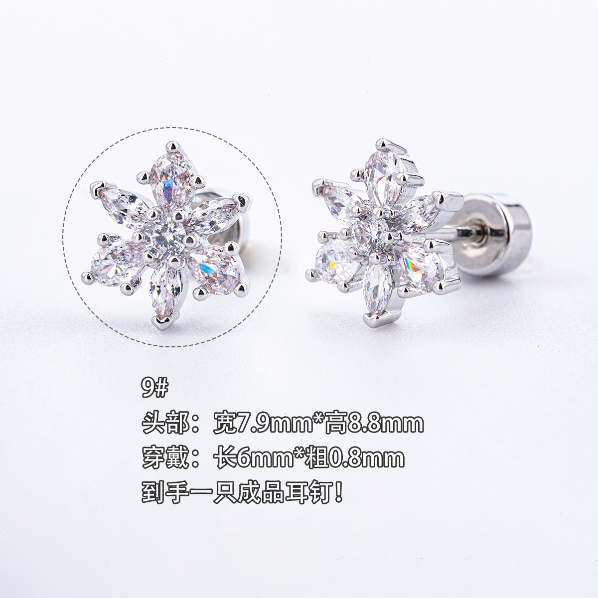 316L Medical Titanium Steel Hot Selling Earrings, Bling Exquisite Zircon Combination Ear Bone Studs, Many Styles, Ear Hole Care Studs