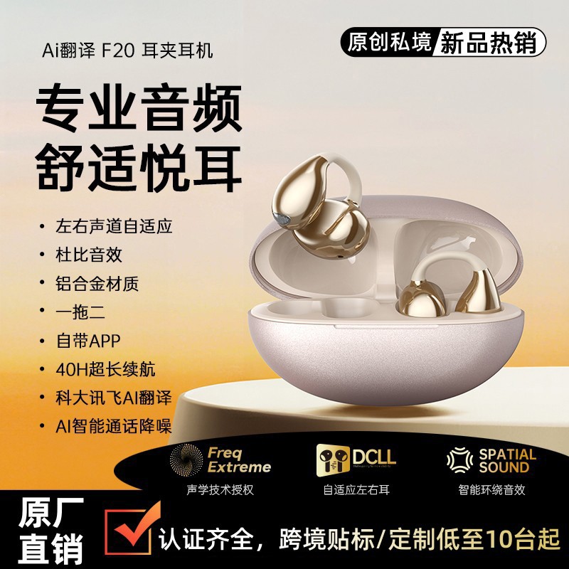Explosions AI Intelligent Translation Bluetooth Headset Really Wireless Not In-ear Ear-hanging Sports Long Endurance Cross-border E-commerce