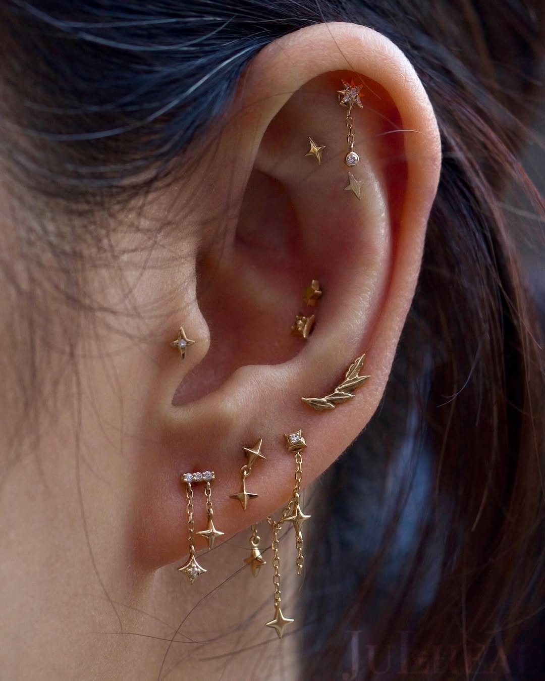 Juxianjia F136 Titanium Alloy Ear Chain Series Pearl/Zircon Handmade Assembly DIY Ear Bone Chain Piercing Jewelry