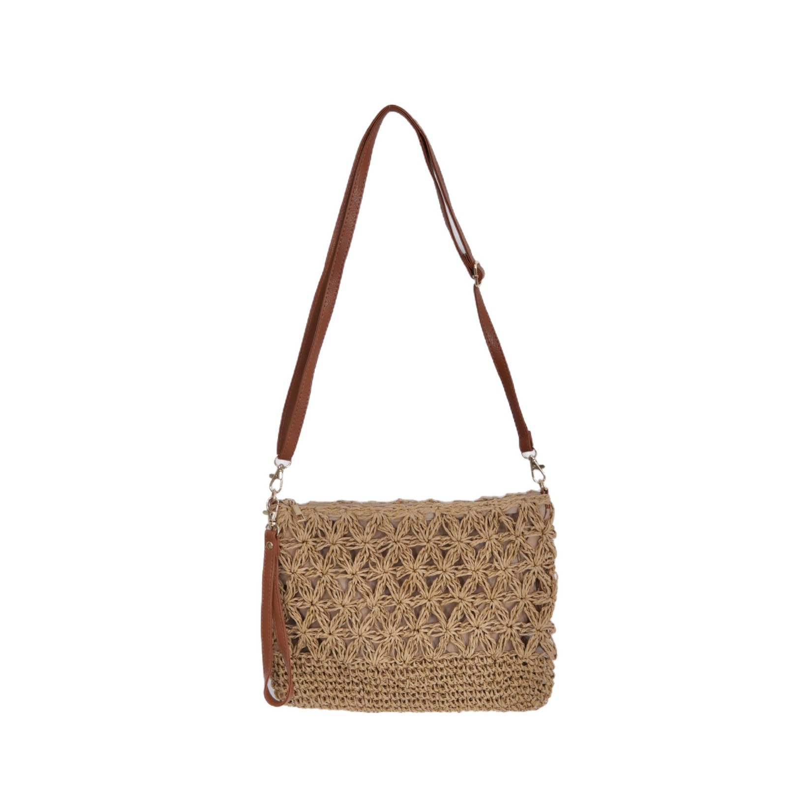 | Versatility / Straps | 2-in-1 design with a built-in hand loop and a detachable, adjustable long strap (synthetic leather or matching woven material). | Competitors highlight versatility. Offering multiple ways to carry the bag (clutch, shoulder, crossbody) is a key value driver and a major selling point for this price segment. |