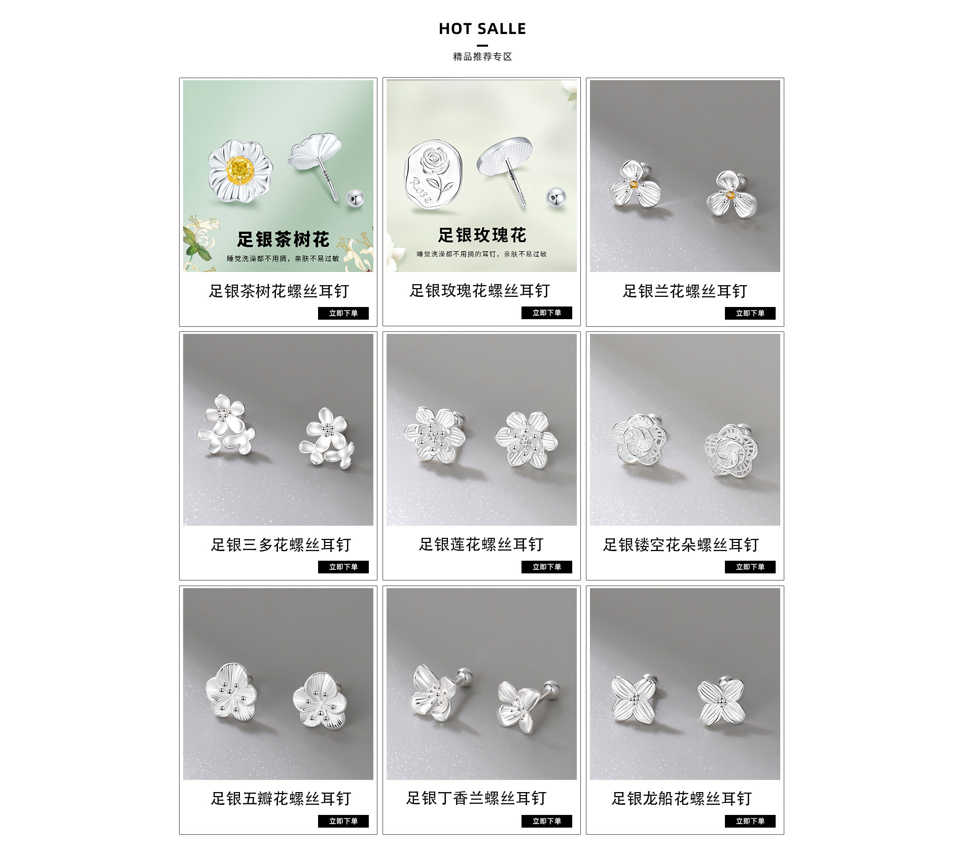 Collection explosions wholesale foreign trade genuine goods Shi Jia Hua Zi flash diamond S925 sterling silver high-grade earring 4 claw summer