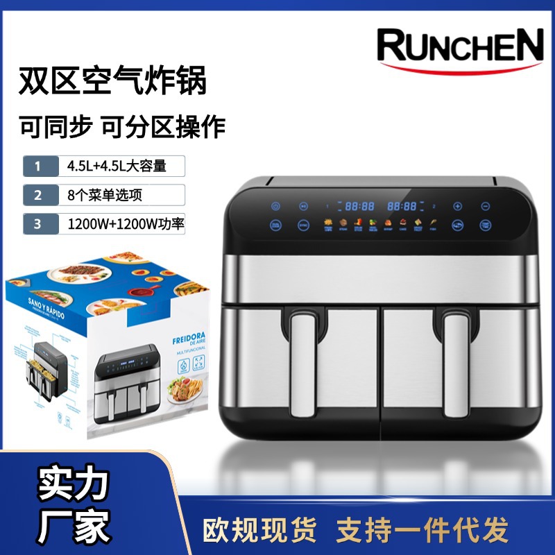 Cross-Border Foreign Trade Export Air Fryer Dual-Zone 9L Large Capacity Air Fryer 220-240V European Standard in Stock