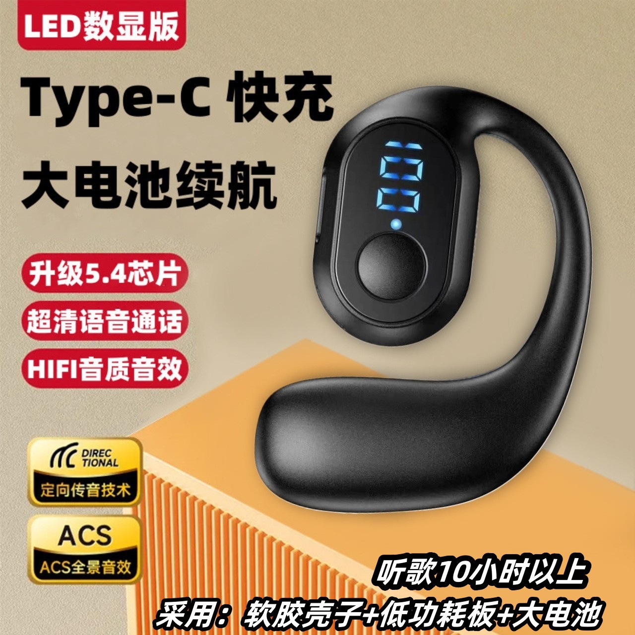 New wireless Bluetooth headset, ear-hanging type-C interface for Apple, Huawei, Vivo, Millet, Oppo headphones