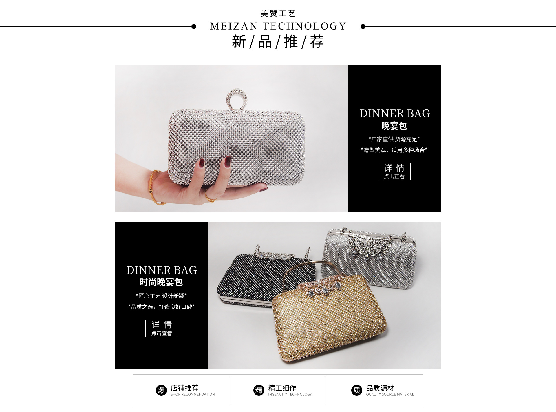 | Quality Control | Mandatory 100% visual inspection for cosmetic defects (dents, scratches), missing embellishments, and hardware functionality before packing. | Aims to eliminate common negative feedback regarding 'missing stones, dents, or detached accessories' and 'receiving the wrong color or design'. |