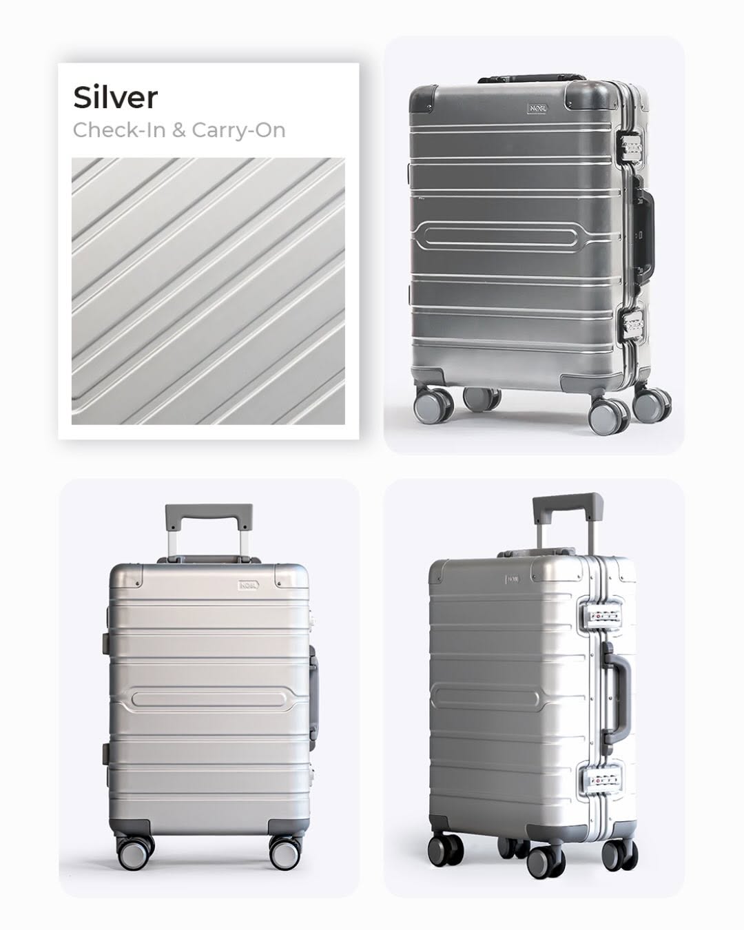 Frame & Shell ConstructionDurable Aluminum Frame with a lightweight PC+ABS composite hard shell.Leverages the positive perception of the 'aluminum frame' for security and sturdiness, as customers love the 'zipperless' design. The PC+ABS shell keeps it 'lightweight' and cost-effective for the value segment, while still looking 'sleek'.