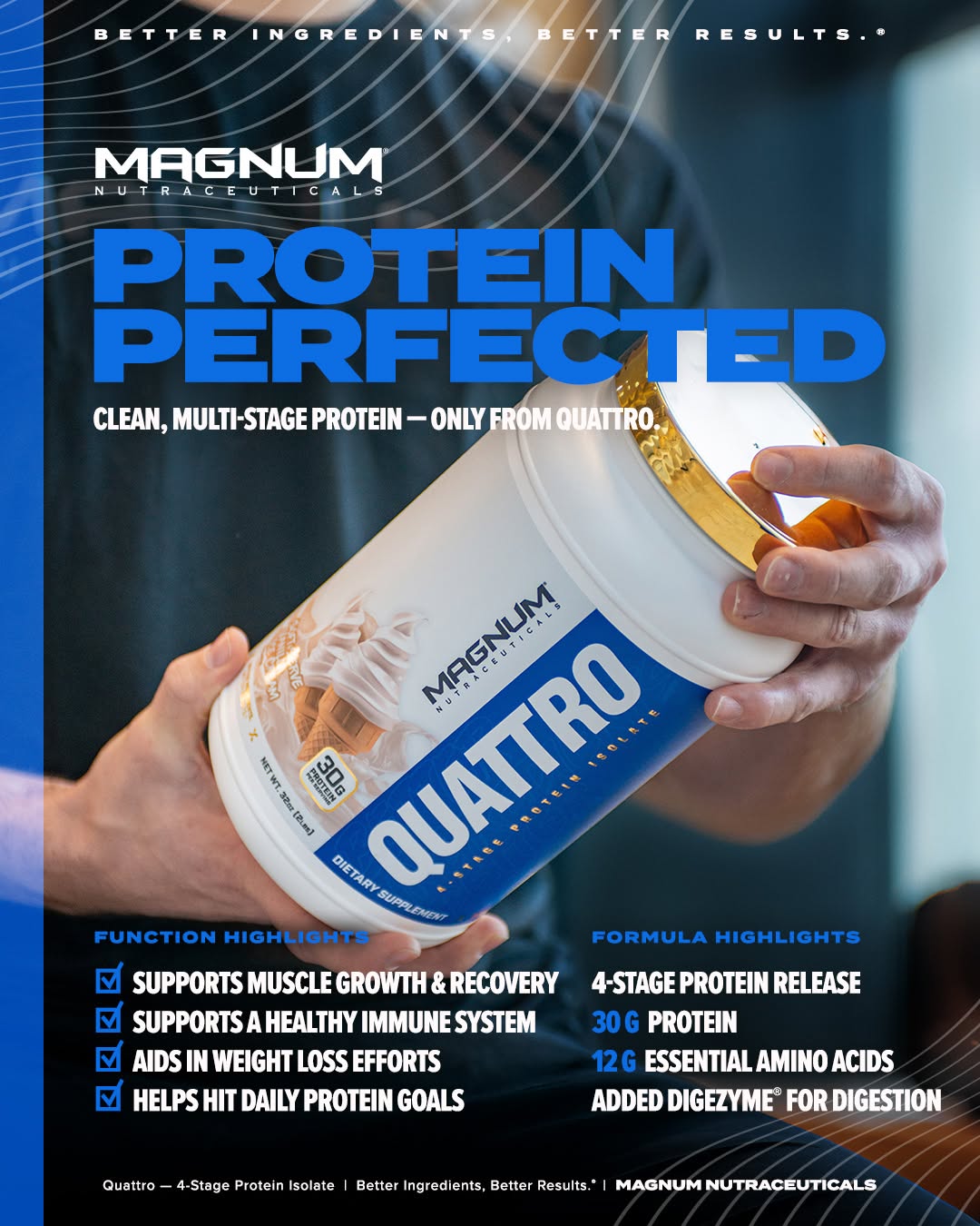 PackagingWide-mouth tub with a screw-on lid and a molded-in scoop holderSolves two major user frustrations: faulty zip-lock seals on bags and the 'buried scoop'. This thoughtful design provides a clear point of differentiation and superior convenience.