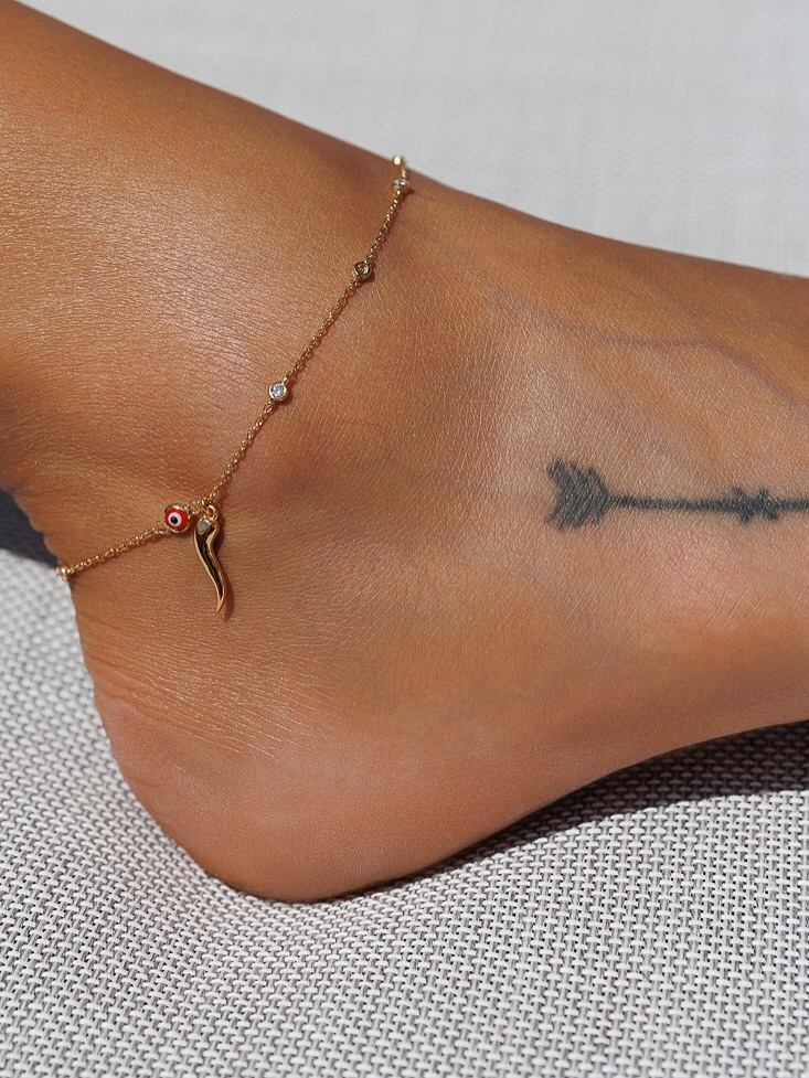 | Embellishments | Small, shimmering crystal or rhinestone accents. | Adds a 'bling' effect, which is a key feature for value competitors, increasing the perceived value and eye-catching appeal of the anklet. |